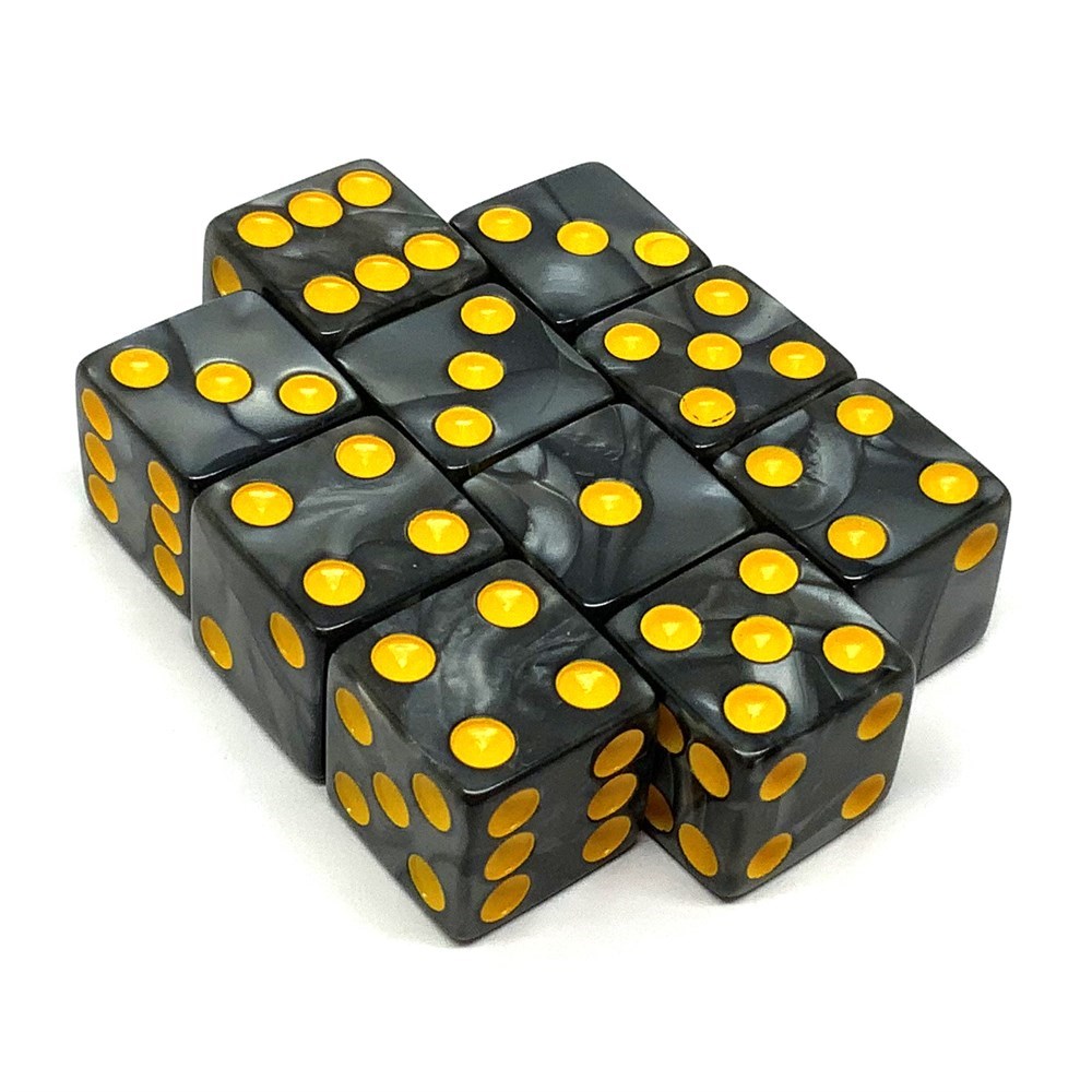 Набор кубиков D6 мраморные Черные 16мм с ровными углами (10 шт.)