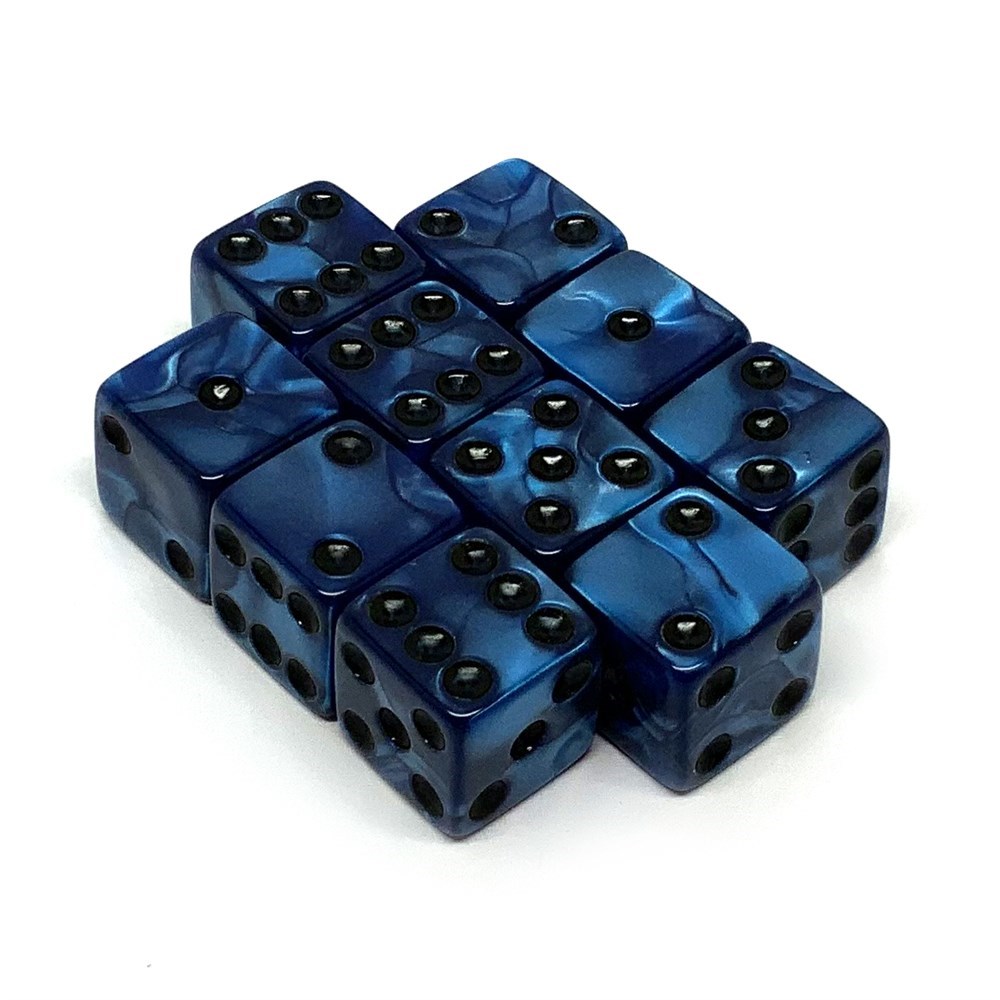 Набор кубиков D6 мраморные Синяя глубина 16мм с ровными углами (10 шт.)