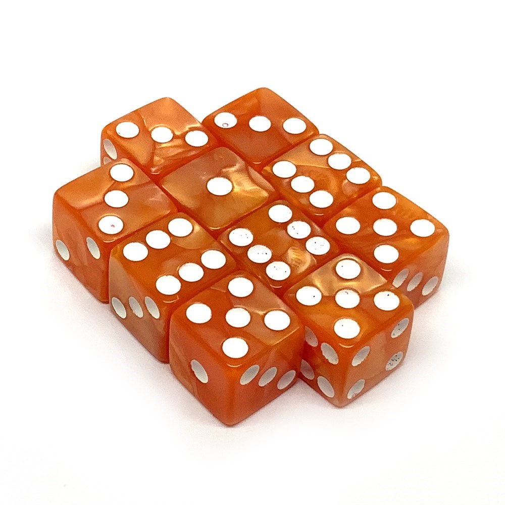 Набор кубиков D6 мраморные Оранжевый позитив 16мм с ровными углами (10 шт.)