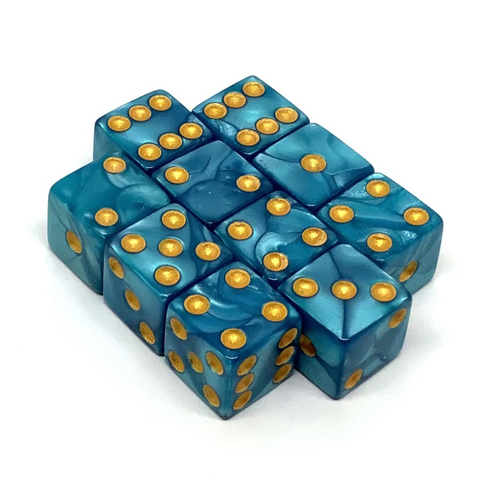 Набор кубиков D6 мраморные Бирюзовая даль 16мм с ровными углами (10 шт.)