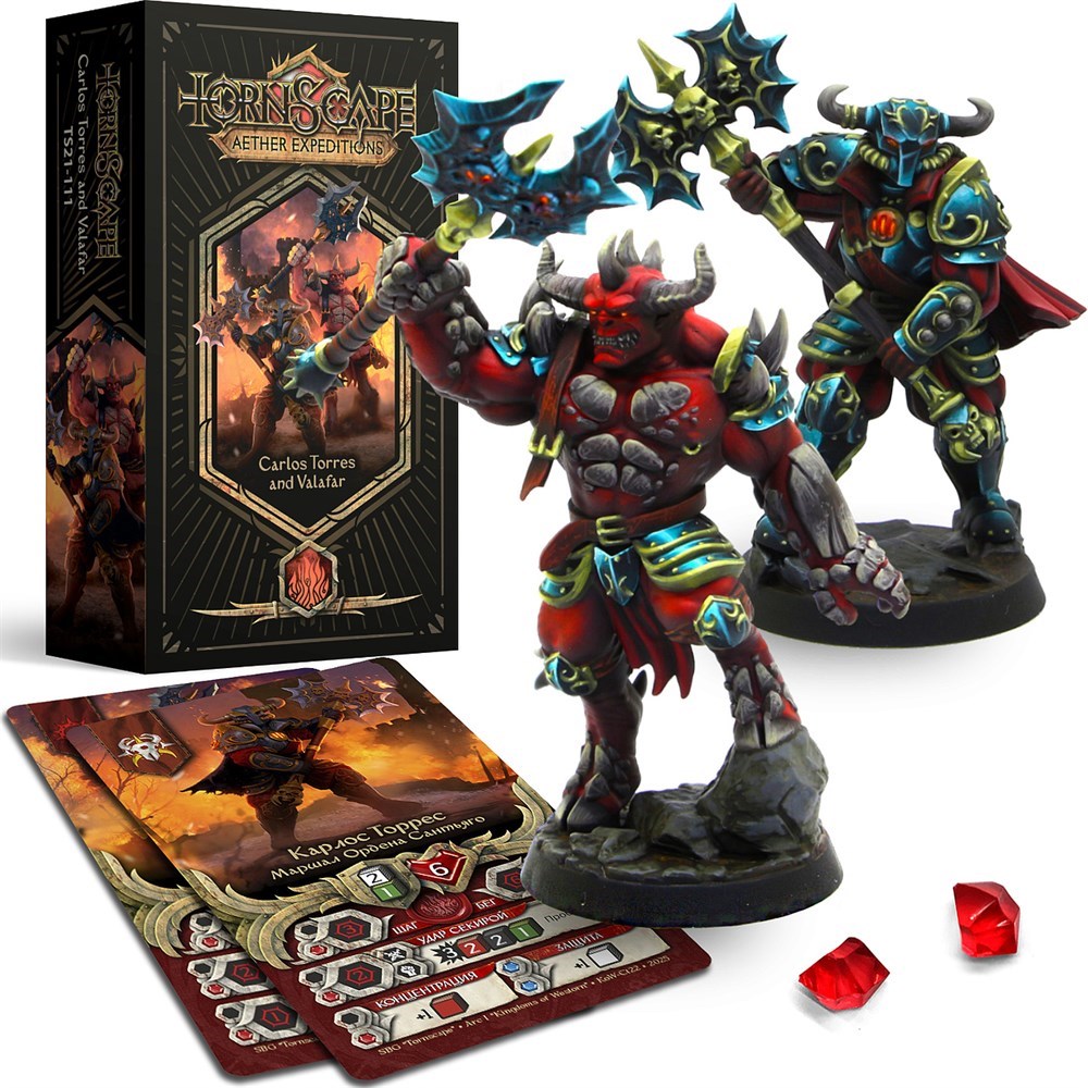 Миниатюры «Карлос Торрес и Валафар» для настольной игры Tornscape. Данный набор состоит из 2 миниатюр и 2 Карточек Миниатюр.