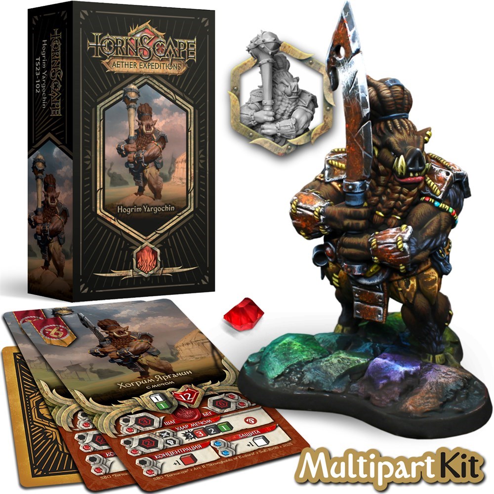 Миниатюры из набора «Хогрим Яргочин» для настольной игры Tornscape. Данный набор состоит из деталей для сборки миниатюры, тройной подставки, Карточек Миниатюр и случайной Карты Богов (Разрушение).