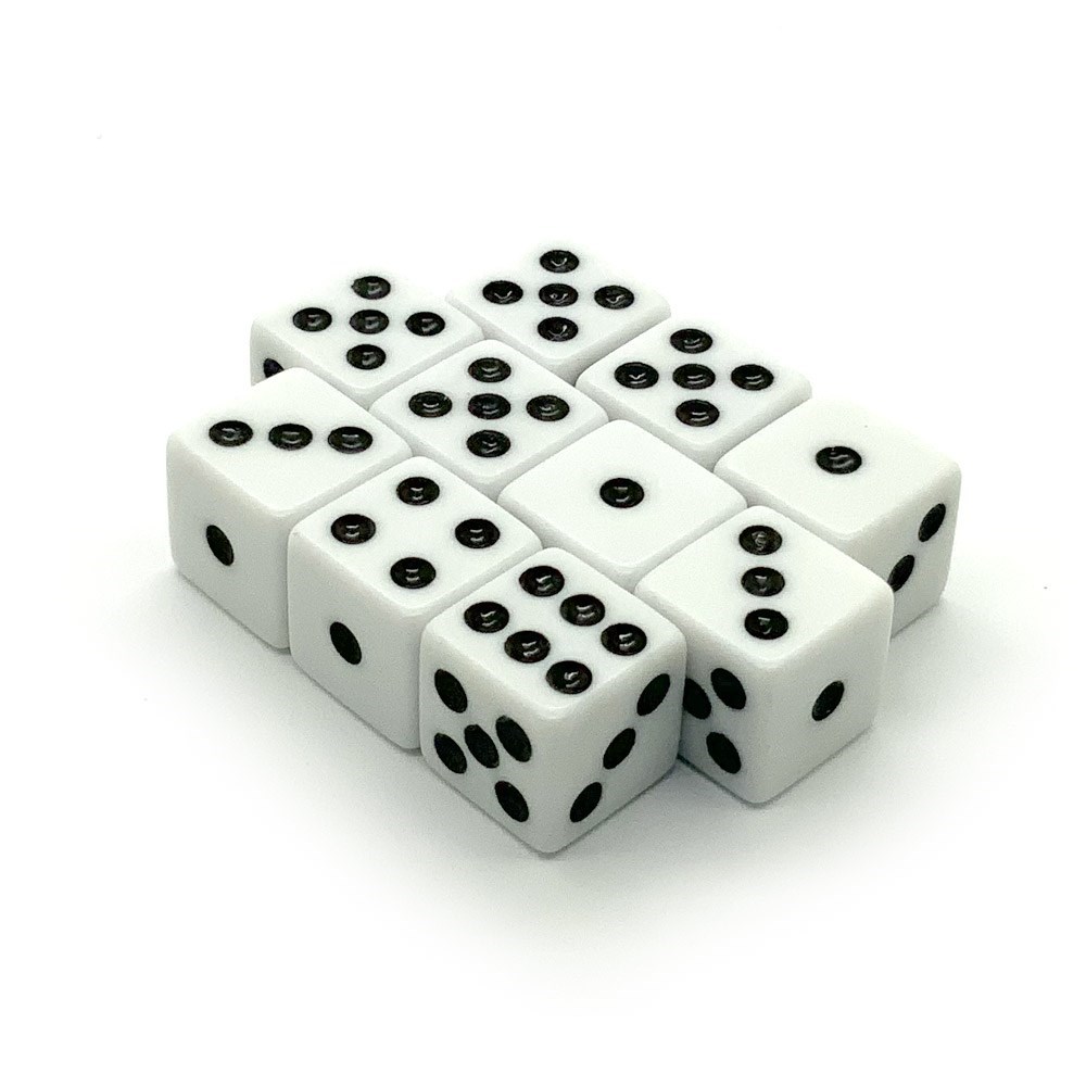 КУБИКИ Д6 12ММ 10ШТ. БЕЛЫЕ С ОСТРЫМИ УГЛАМИ