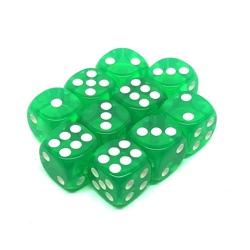 Кубики д6 12мм 10шт. Зеленые прозрачные