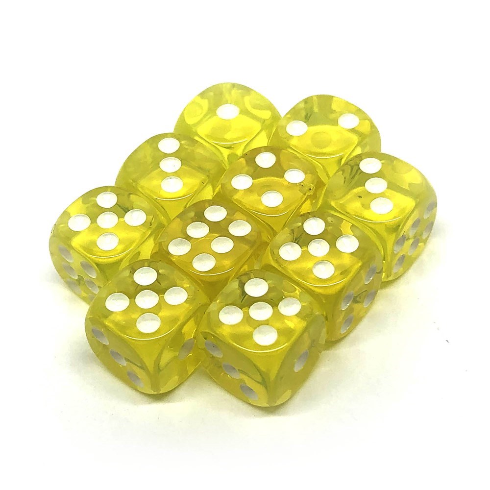 Кубики д6 12мм 10шт. Желтые прозрачные