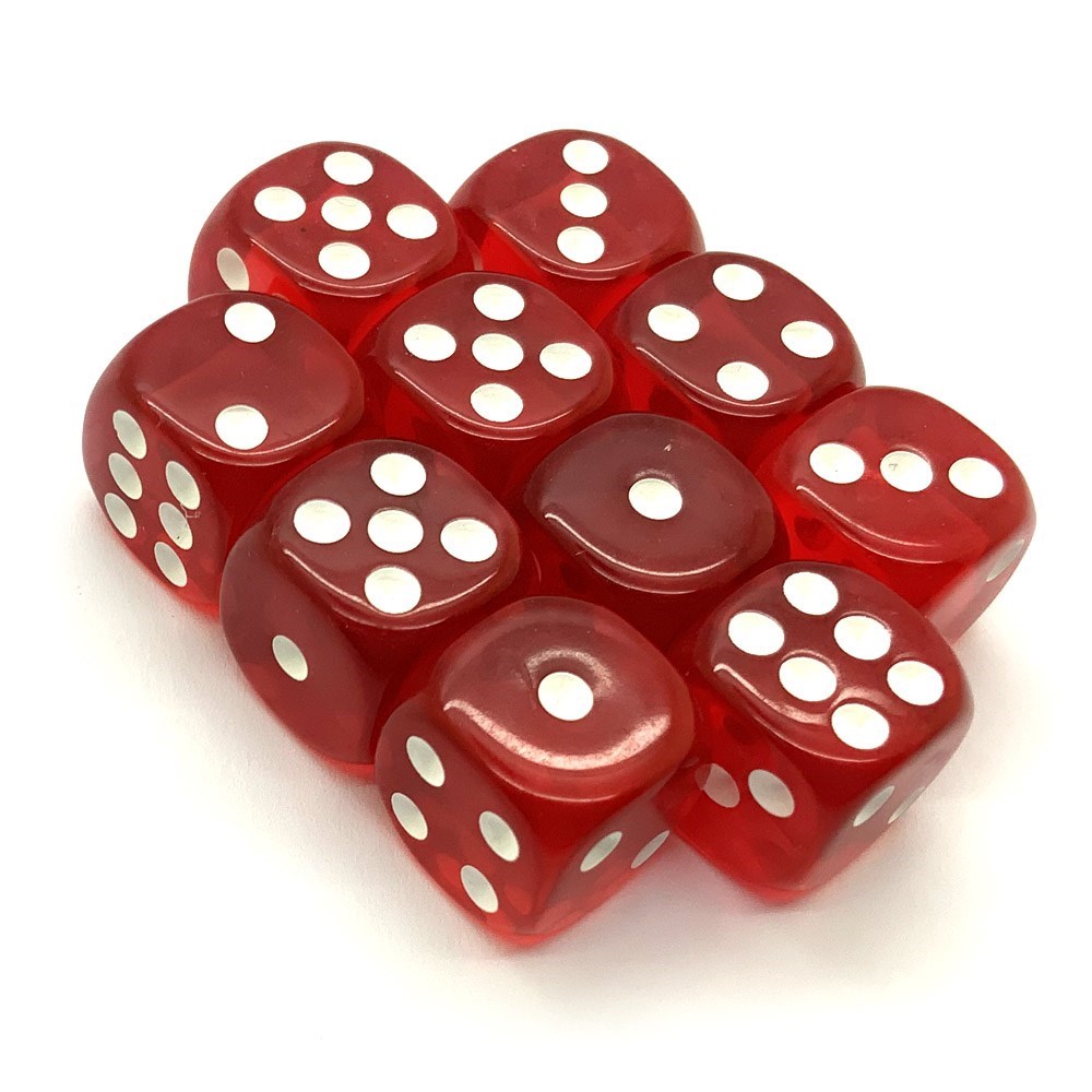 КУБИКИ Д6 14ММ 10ШТ. КРАСНЫЕ ПРОЗРАЧНЫЕ
