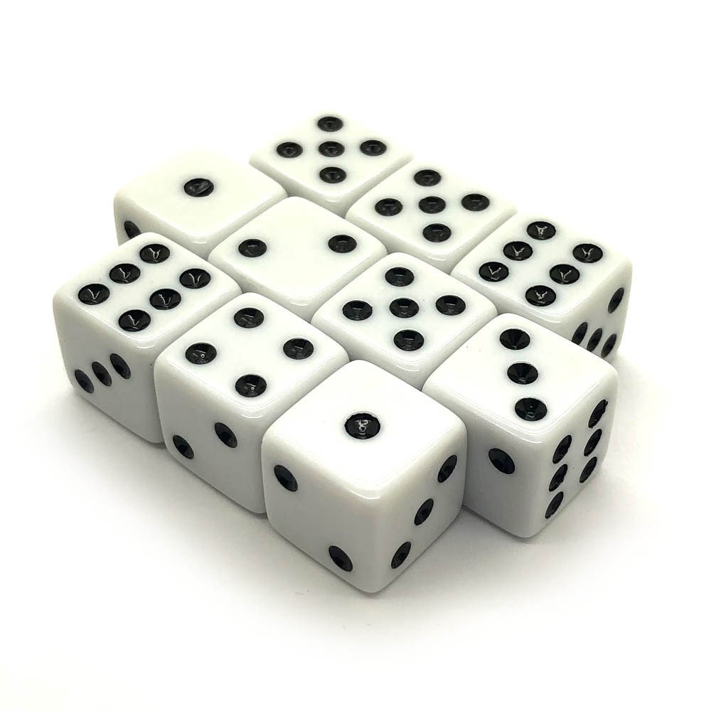 НАБОР КУБИКОВ 10 ШТ. D6 МАТОВЫЙ БЕЛЫЙ 16ММ С РОВНЫМИ УГЛАМИ