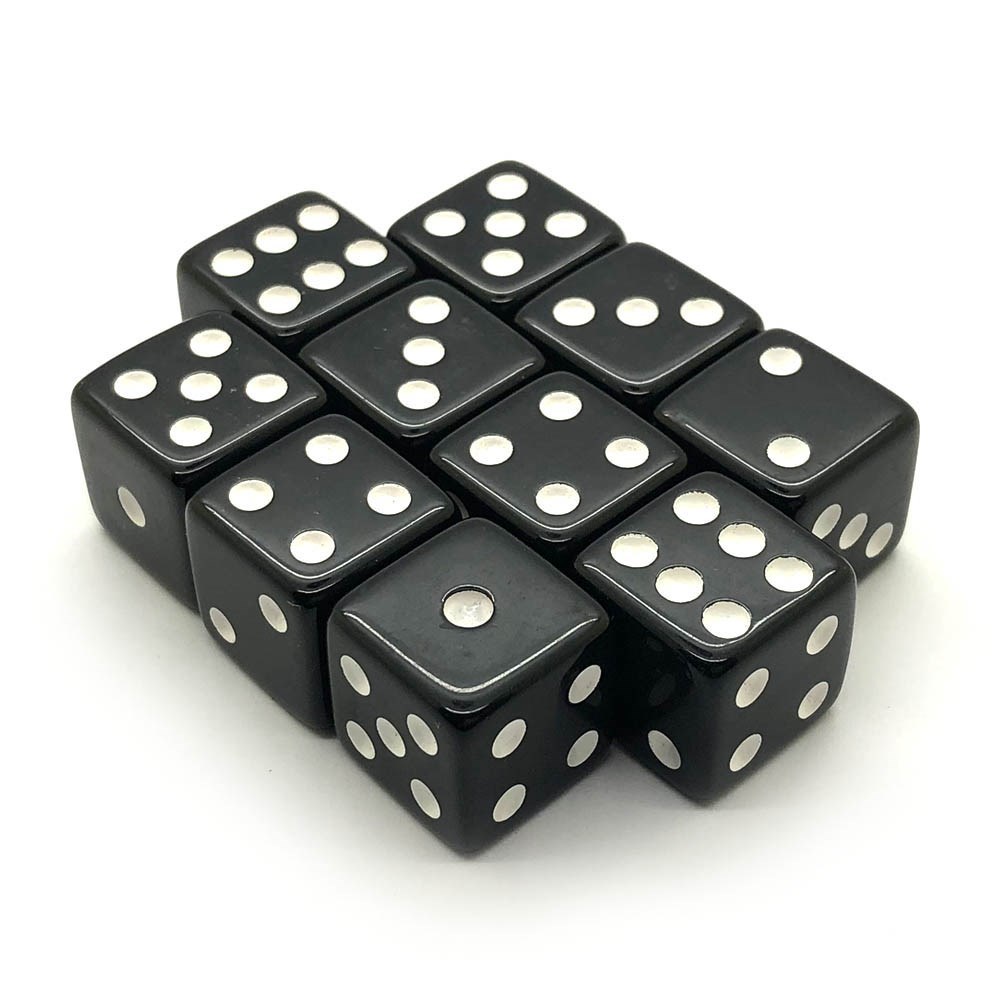 Кубики д6 16мм 10шт. Черные с острыми углами
