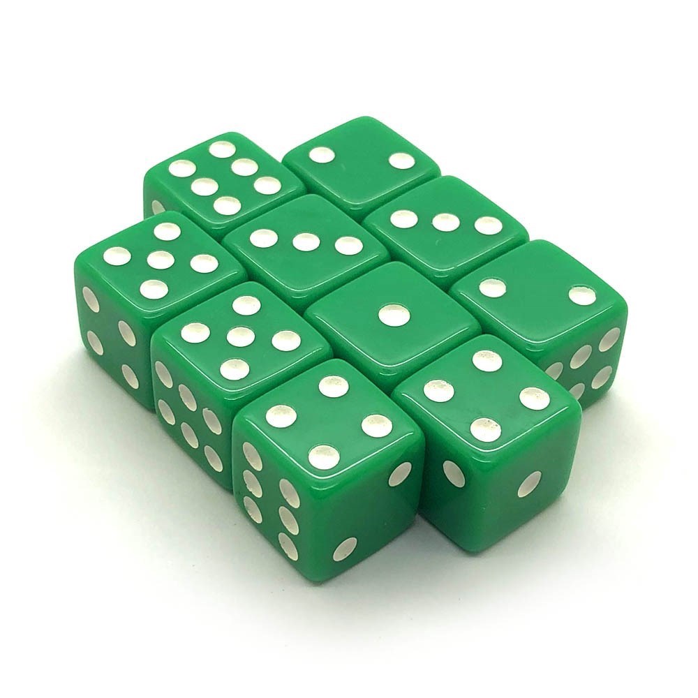 НАБОР КУБИКОВ 10 ШТ. D6 МАТОВЫЙ ЗЕЛЁНЫЙ 16ММ С РОВНЫМИ УГЛАМИ