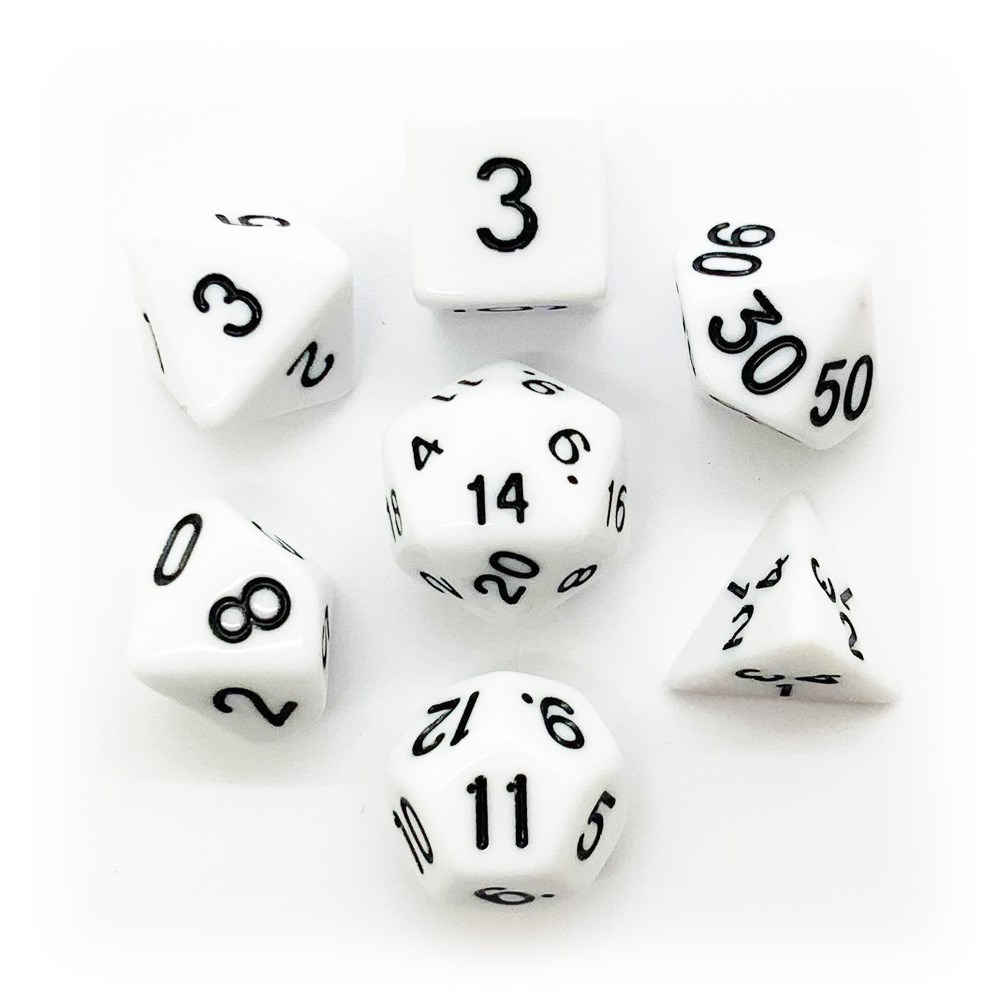 НАБОР ИЗ 7 ПЛАСТИКОВЫХ КУБИКОВ RPG БЕЛЫЙ С ЧЕРНЫМ