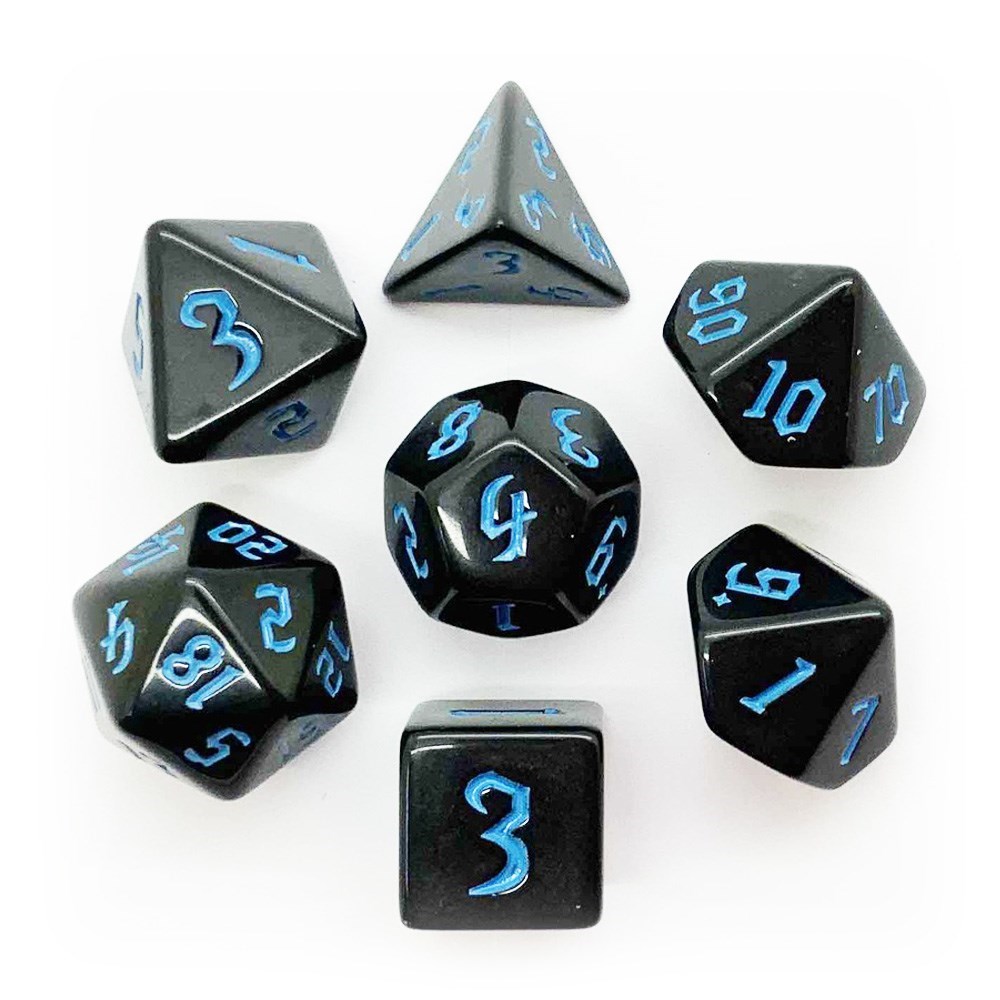 НАБОР ИЗ 7 ПЛАСТИКОВЫХ КУБИКОВ RPG ЧЕРНЫЙ С СИНИМ