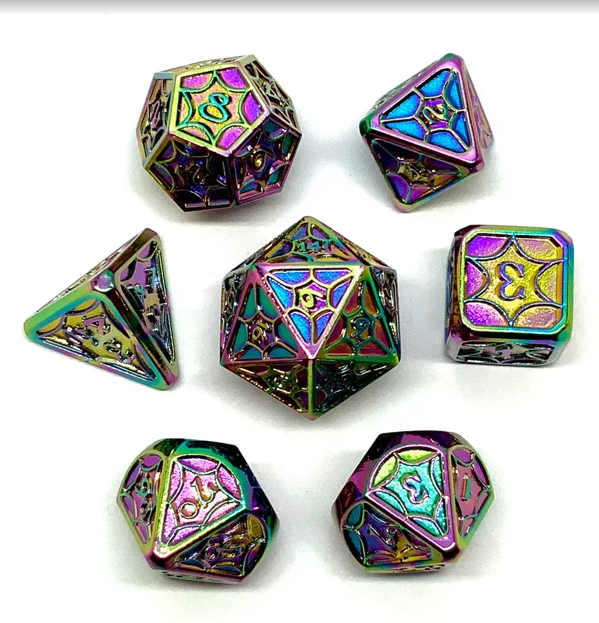 Кубики ДнД (7 шт) металлические / Дайсы для DnD / Dungeons & Dragons / RPG / Мыльный витраж