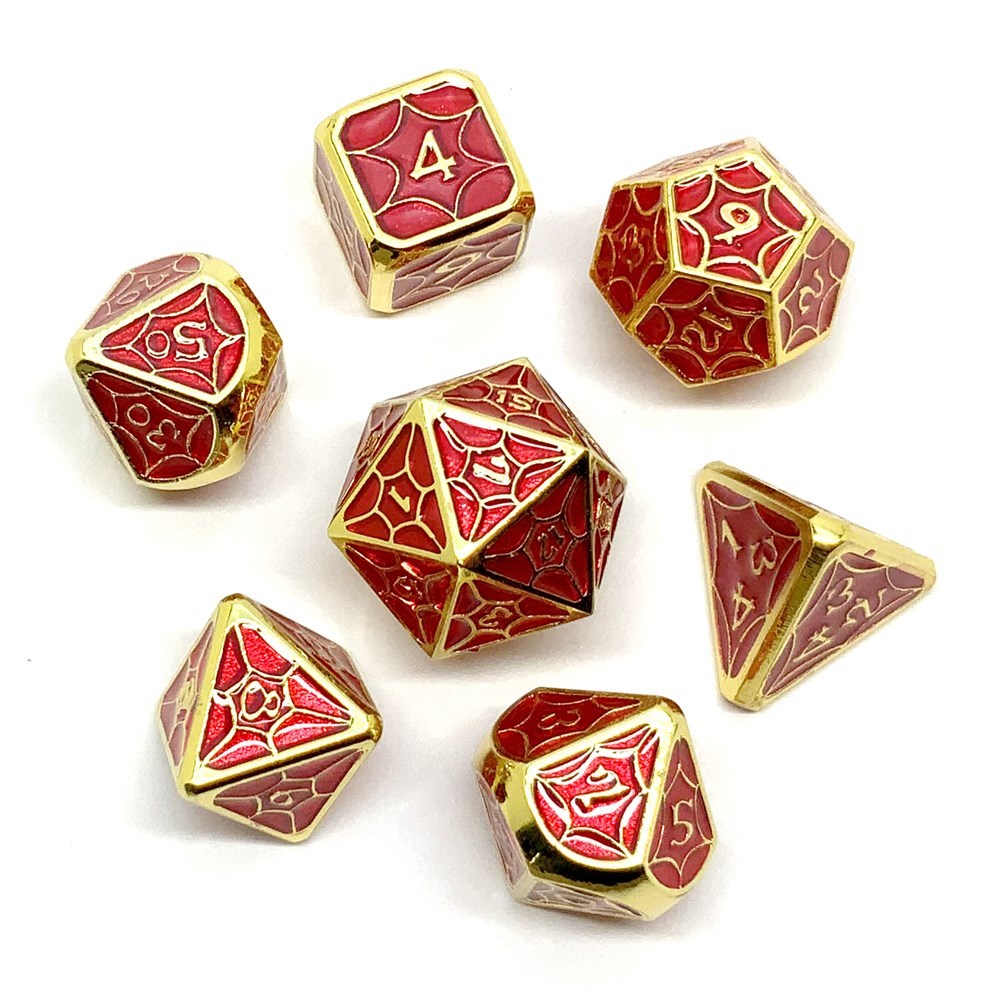 Кубики ДнД (7 шт) металлические / Дайсы для DnD / Dungeons & Dragons / RPG / Красный витраж