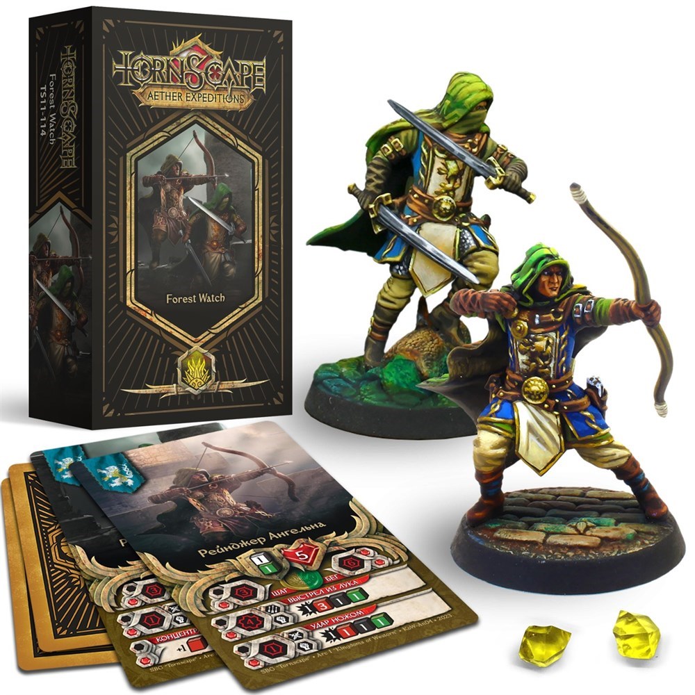 Миниатюры из набора «Лесной Дозор» для настольной игры Tornscape. Данный набор состоит из деталей для сборки миниатюр, 32мм Подставок, Карточек Миниатюр и случайных Карт Богов (Созидание).
