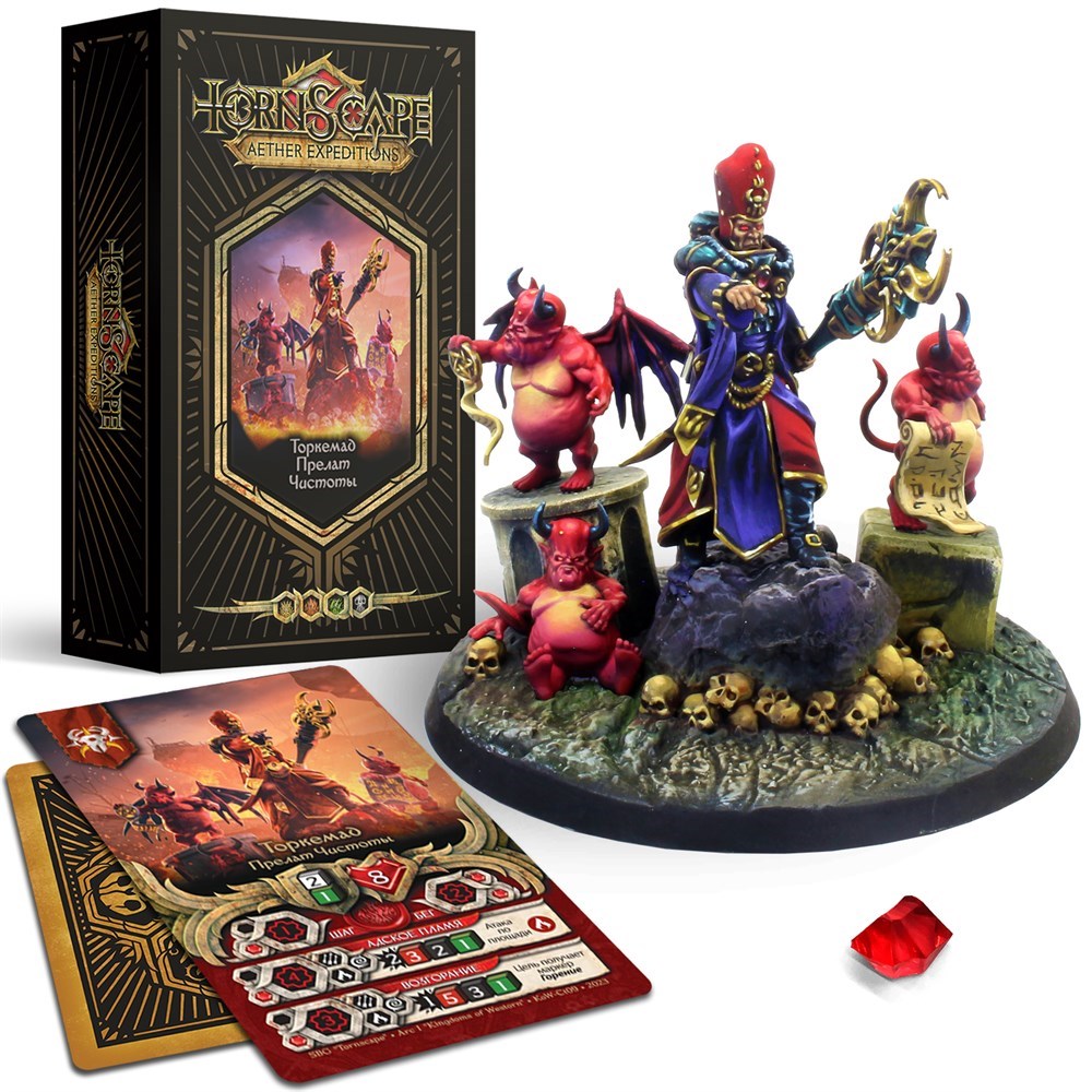 Миниатюра «Торкемад, Прелат Чистоты» для настольной игры Tornscape. Данный набор состоит из деталей для сборки миниатюры, 80мм Подставки, Карточки Миниатюры и случайной Карты Бога (Разрушение).