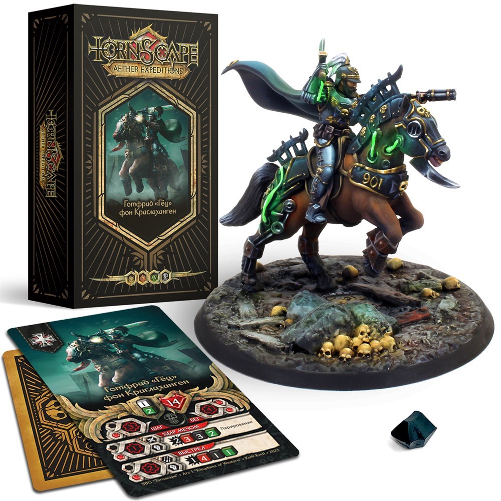 Миниатюра «Готфрид «Гёц» фон Криглихинген» для настольной игры Tornscape. Данный набор состоит из деталей для сборки миниатюры, 80мм Подставки, Карточки Миниатюры и случайной Карты Бога (Смерть).