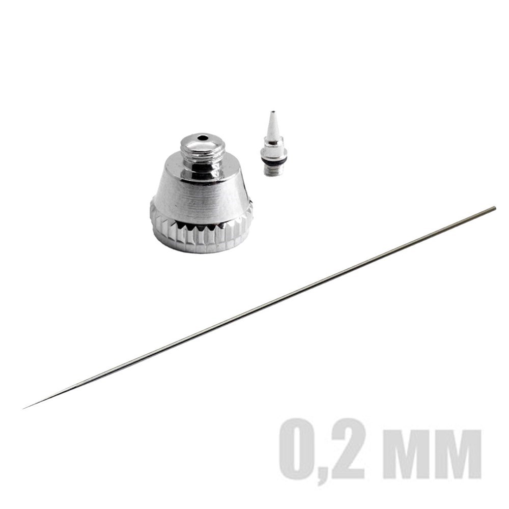 Набор для аэрографа с резьбовым соплом 0,2 мм (игла, сопло, корпус диффузора) OW