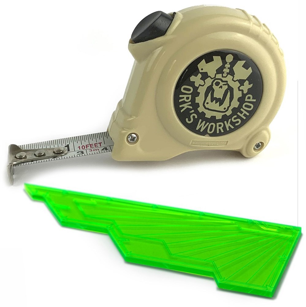 НАБОР ИЗМЕРИТЕЛЬНЫХ АКСЕССУАРОВ ДЛЯ WARHAMMER 40000: РУЛЕТКА + ЛИНЕЙКА "ORK'S WORKSHOP" (ПУСТЫННЫЙ)
