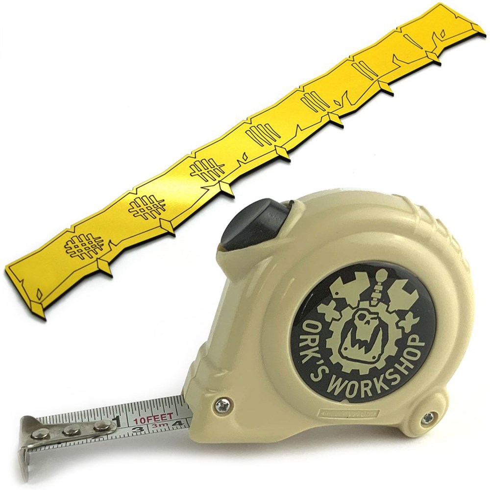 НАБОР ИЗМЕРИТЕЛЬНЫХ АКСЕССУАРОВ ДЛЯ WARHAMMER AGE OF SIGMAR: РУЛЕТКА + ЛИНЕЙКА "ORK'S WORKSHOP" (ПУСТЫННЫЙ)