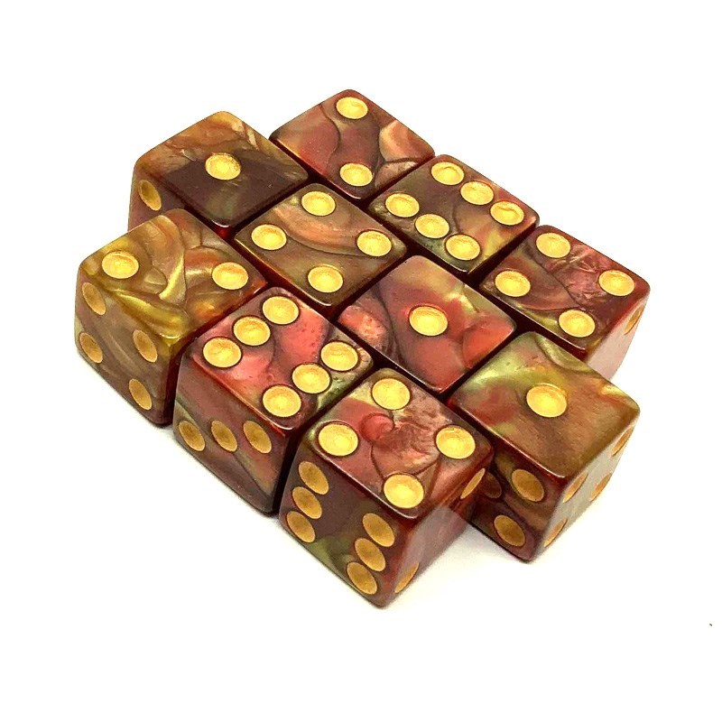 Набор кубиков 10 шт. D6 перламутровые "Ярость Леса" 16мм с ровными углами