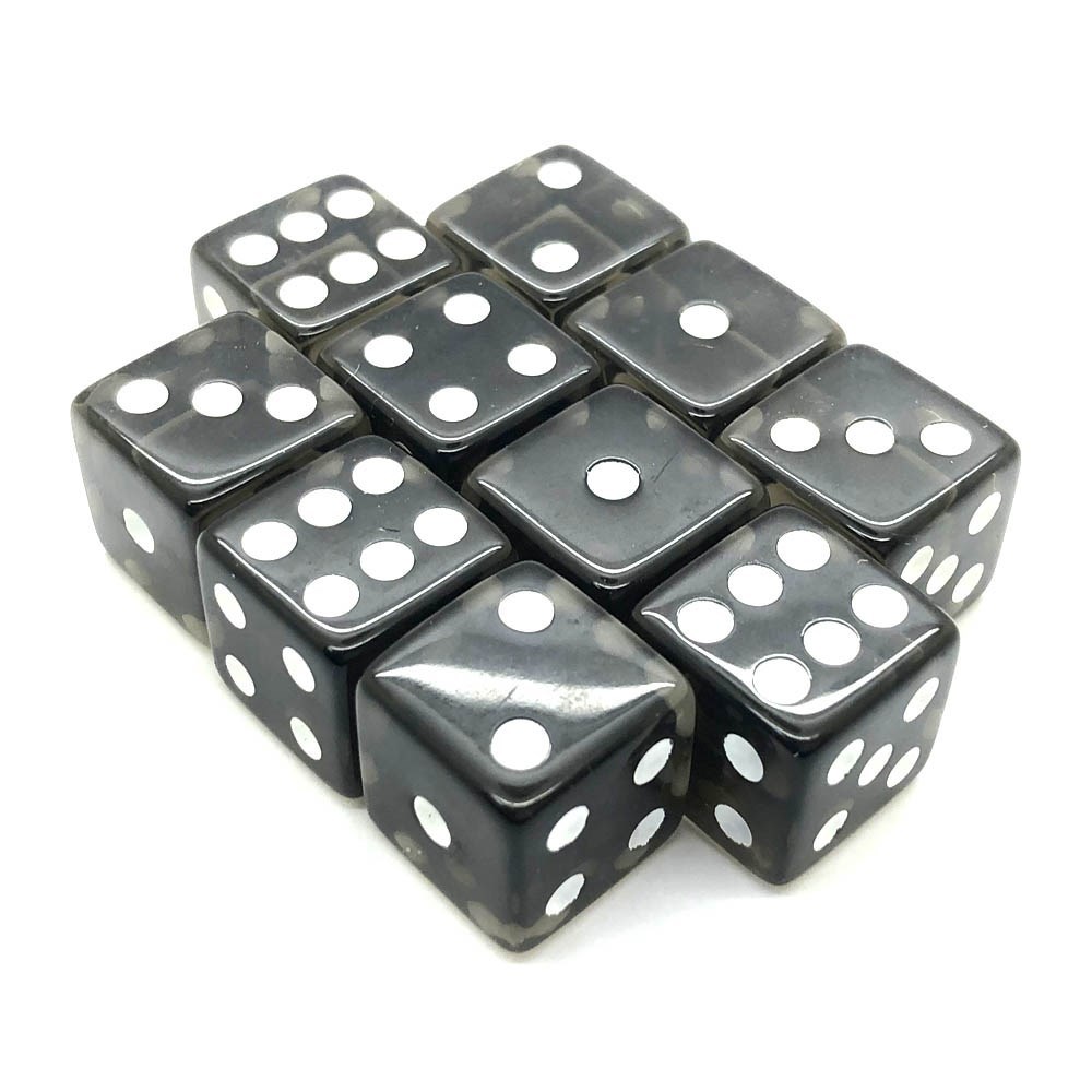 Набор кубиков 10 шт. D6 прозрачный чёрный 16мм с ровными углами