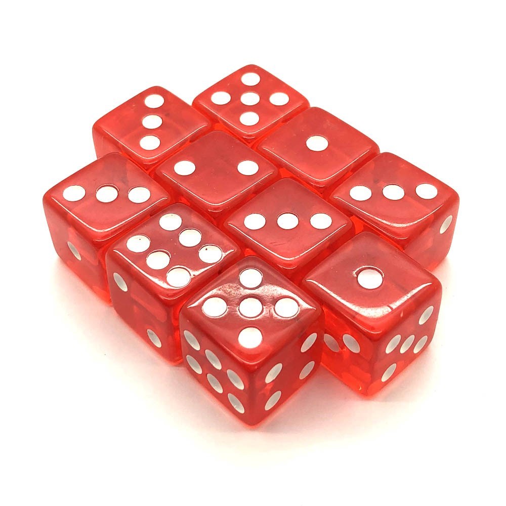 Набор кубиков 10 шт. D6 прозрачный красный 16мм с ровными углами