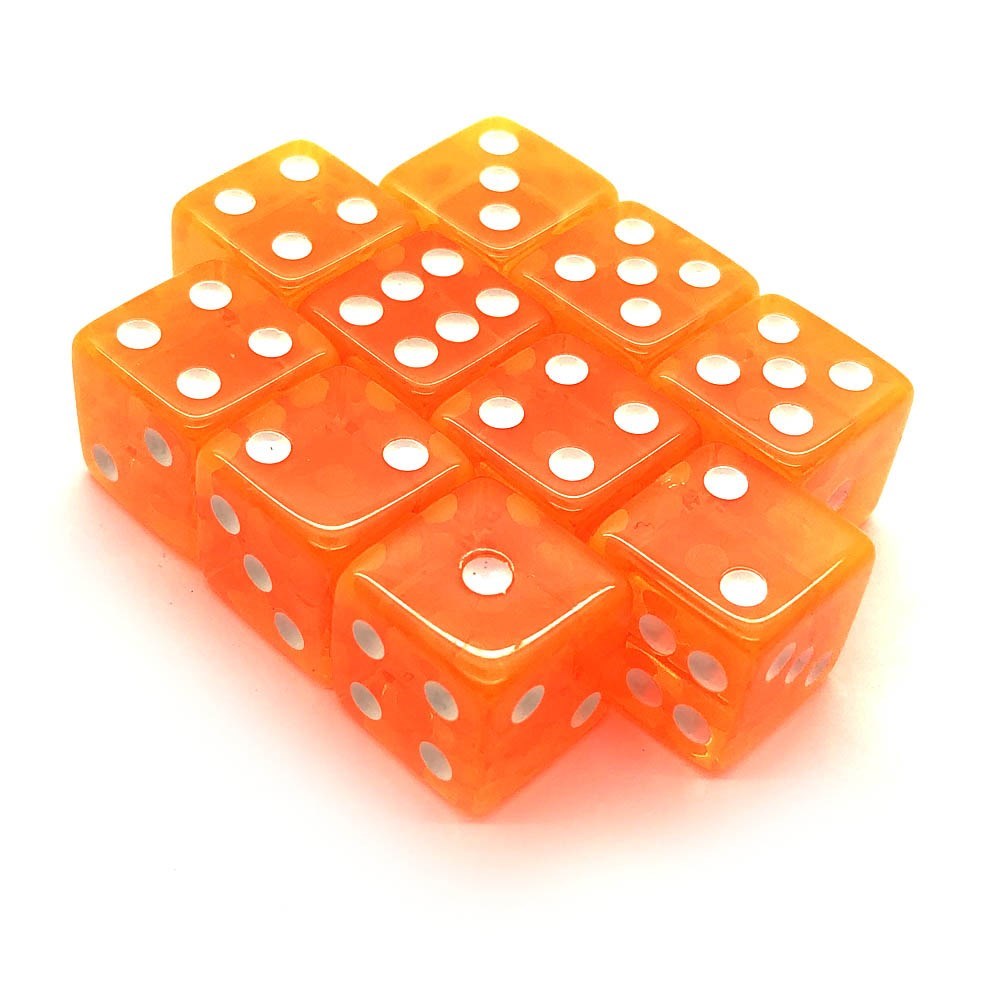 НАБОР КУБИКОВ 10 ШТ. D6 ПРОЗРАЧНЫЙ ОРАНЖЕВЫЙ 16ММ С РОВНЫМИ УГЛАМИ
