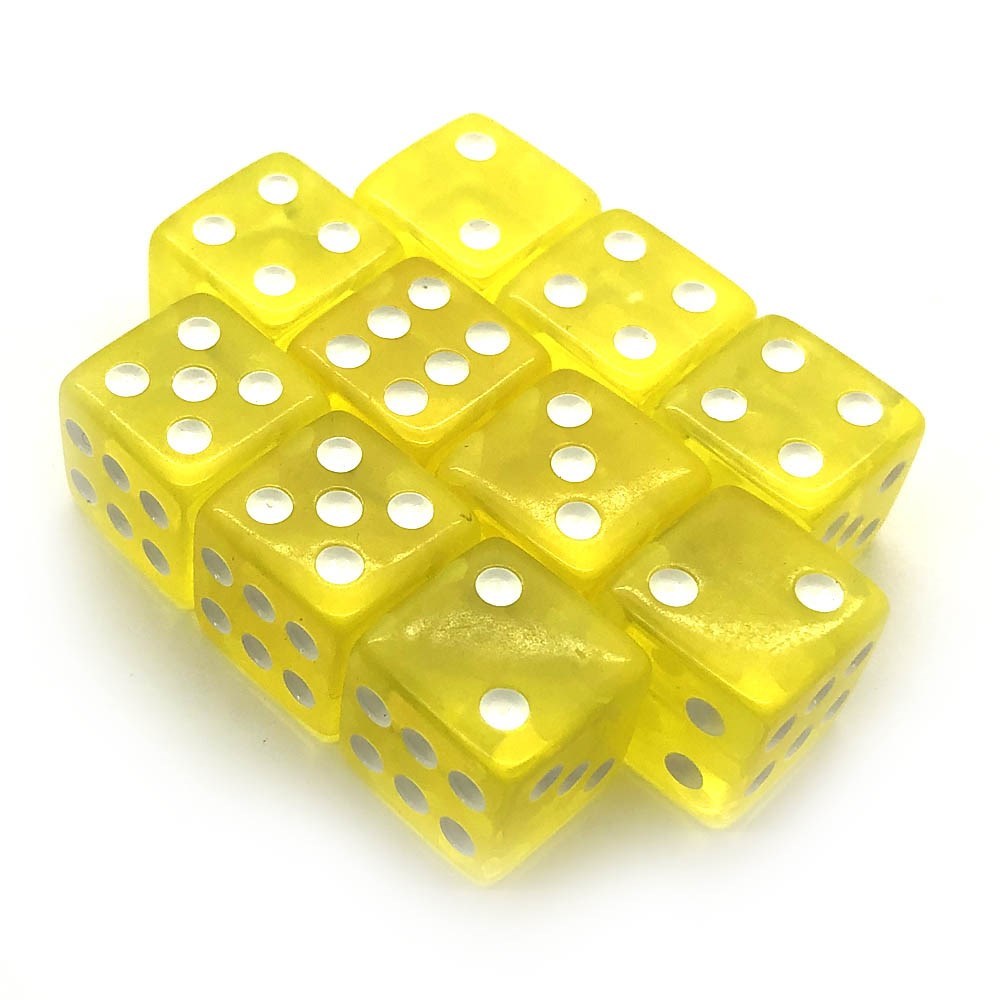 НАБОР КУБИКОВ 10 ШТ. D6 ПРОЗРАЧНЫЙ ЖЁЛТЫЙ 16ММ С РОВНЫМИ УГЛАМИ
