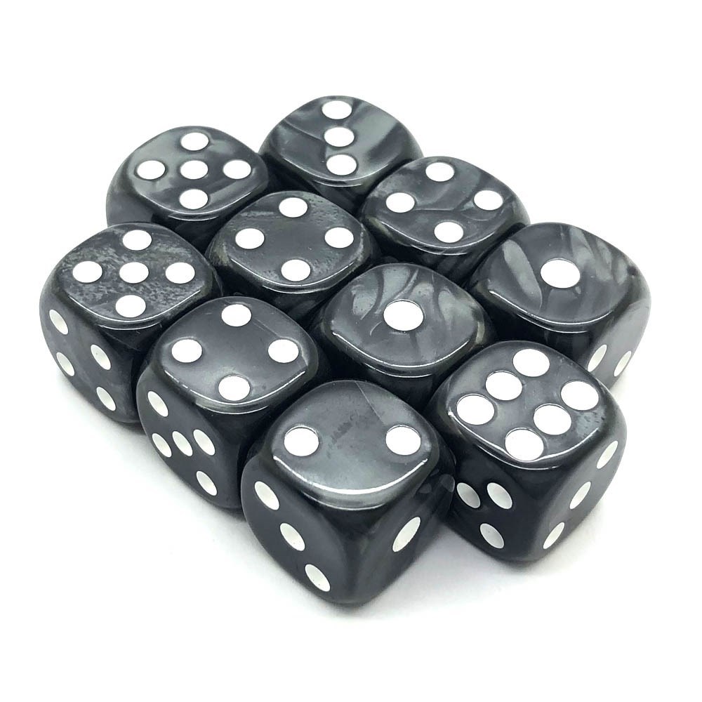 Набор кубиков 10 шт. Кубик D6 мраморный чёрный 16мм с закруглёнными углами