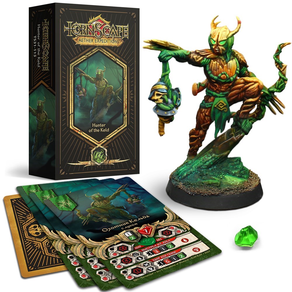 - 1 Миниатюра «Охотник» (три опции вооружения: когти, когти и глефа, когти и лук; две опции головы)