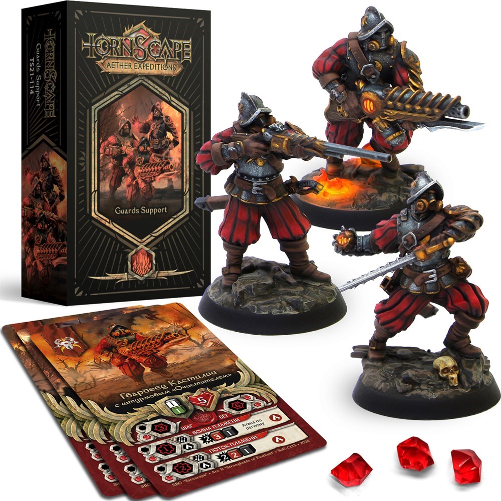 Миниатюры из набора «Поддержка Гвардии Кастилии» для настольной игры Tornscape. Данный набор состоит из деталей для сборки миниатюр, Карточек Миниатюр