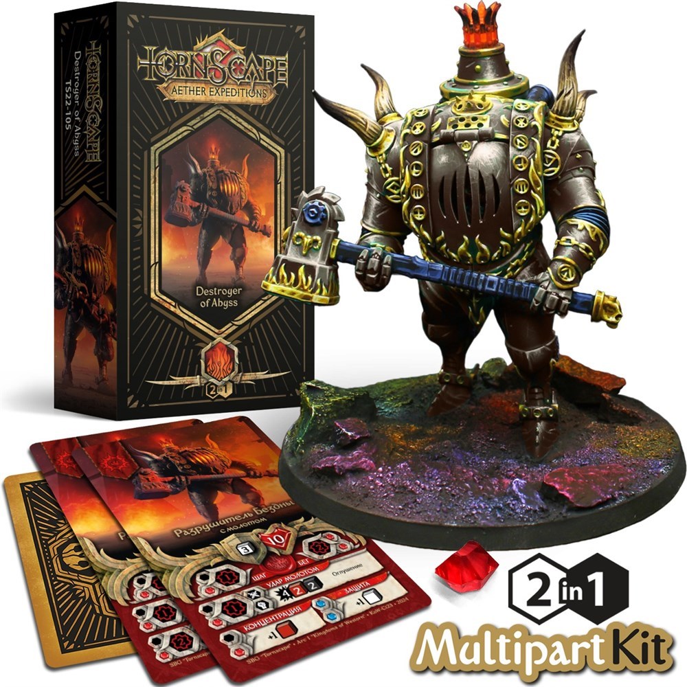Миниатюра «Разрушитель Бездны» для настольной игры Tornscape. Данный набор состоит из деталей для сборки миниатюры, 80мм Подставки, Карточки Миниатюры и случайной Карты Бога (Разрушение).