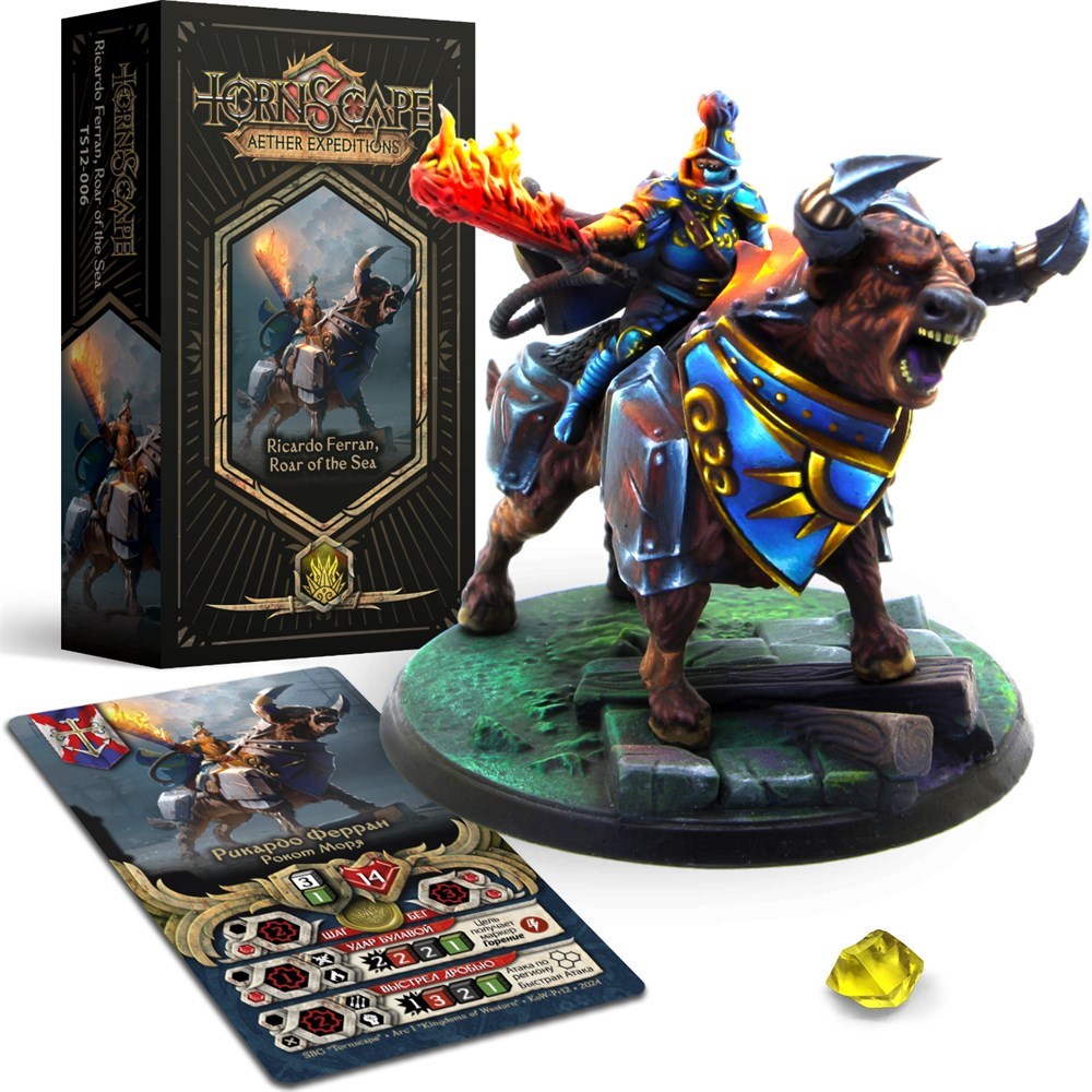 Миниатюра «Рикардо Ферран, Рокот Моря» для настольной игры Tornscape. Данный набор состоит из деталей для сборки миниатюры, 80мм Подставки, Карточки Миниатюры.