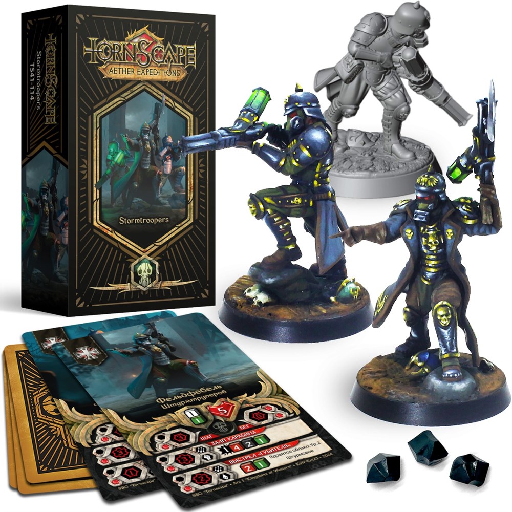 Миниатюры из набора «Штурмтруперы» для настольной игры Tornscape. Данный набор состоит из готовых к игре миниатюр, Карточек Миниатюр и случайных Карт Богов (Смерть).