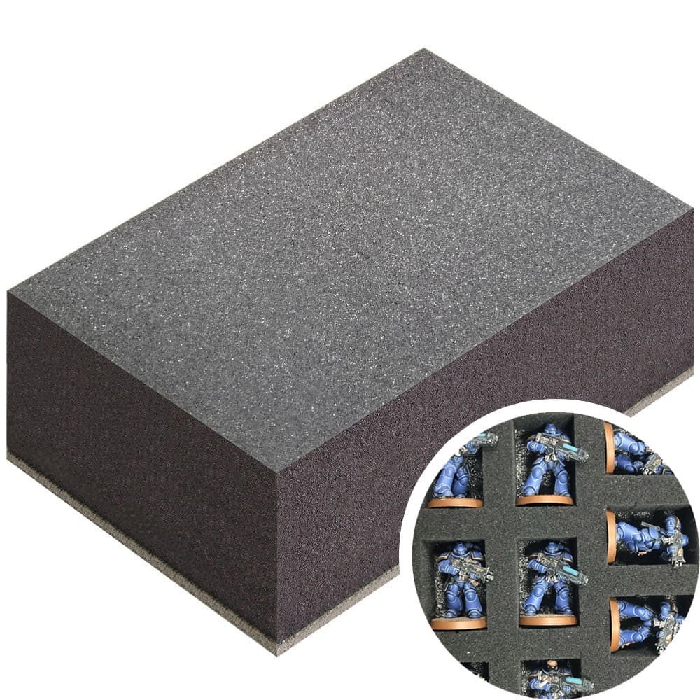 Трей — это форма для транспортировки миниатюр. Изготовлен из специального поролона. Предназначен для хранения и транспортировки миниатюр. Изготовленный из пенополиуретана, он состоит из надрезанных прямоугольников, которые легко извлекаются. Ячейки легко формируются под любую форму.