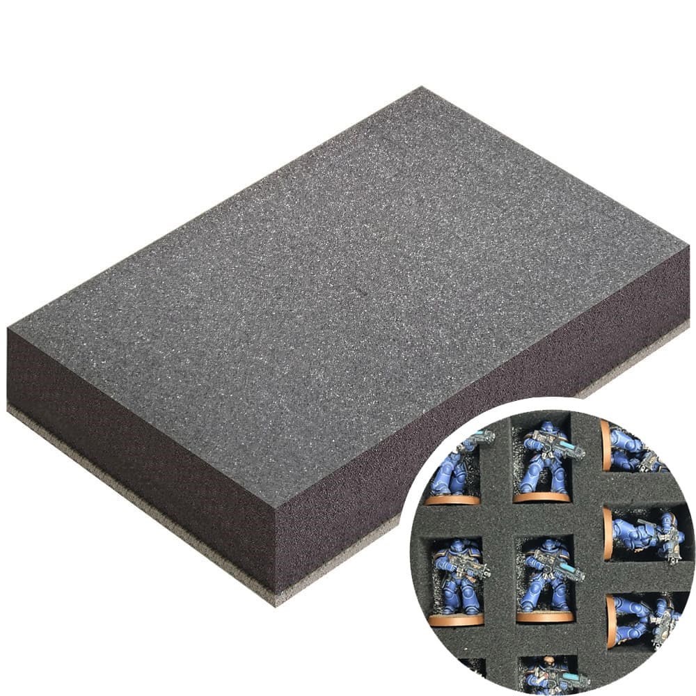 Трей — это форма для транспортировки миниатюр. Изготовлен из специального поролона. Предназначен для хранения и транспортировки миниатюр. Выполненный из пенополиуретана, он состоит из надрезанных прямоугольников, которые легко извлекаются. Ячейки легко формируются под любую форму.