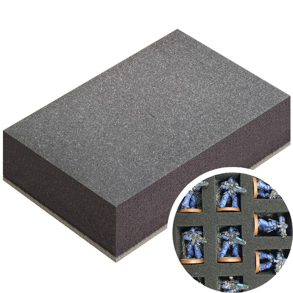 Трей — это форма для транспортировки миниатюр. Изготовлен из специального поролона. Предназначен для хранения и транспортировки миниатюр. Изготовленный из пенополиуретана, он состоит из надрезанных прямоугольников, которые легко извлекаются. Ячейки легко формируются под любую форму.